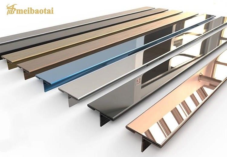 MBT Paslanmaz Çelik Plakası Trim'in ana amacı, plitelerden oluşan yüzeyleri parçalanma ve aşınmaya karşı korumak.MBT Paslanmaz Çelik Pliteler Golden de mevcuttur.Gül Altını, Şampanya Altını, Siyah Titanyum, Gümüş bitirme.